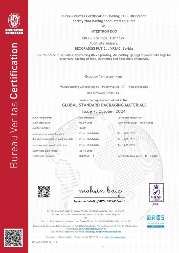BRC globalni standard za pakovanje i ambalažne materijale